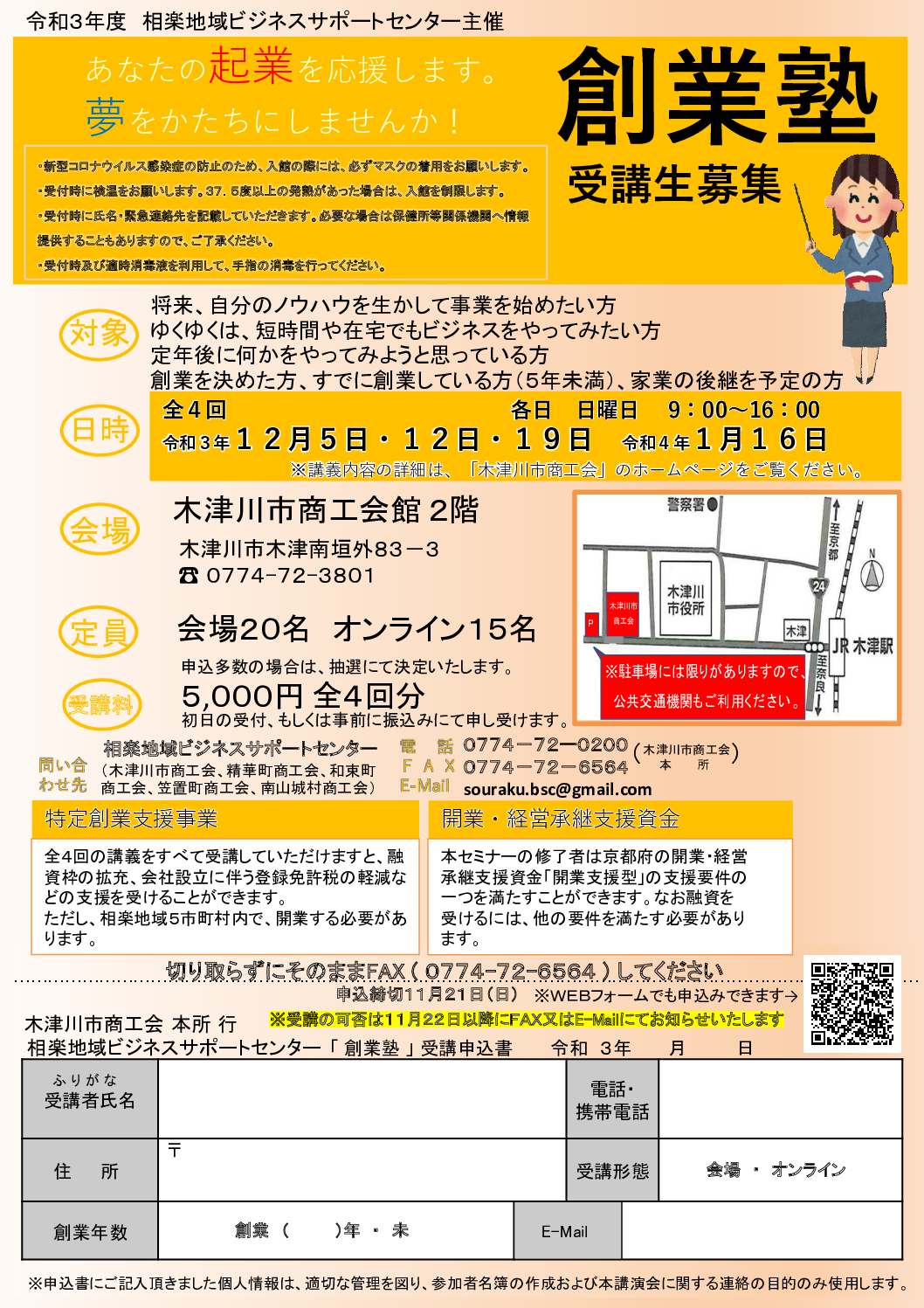会 場:木津川市商工会館2階【木津川市木津南垣内83-3 TEL0774-72-3801】