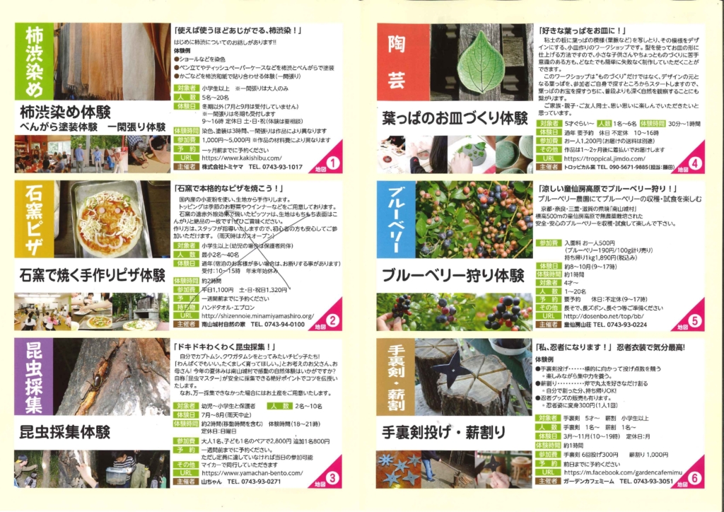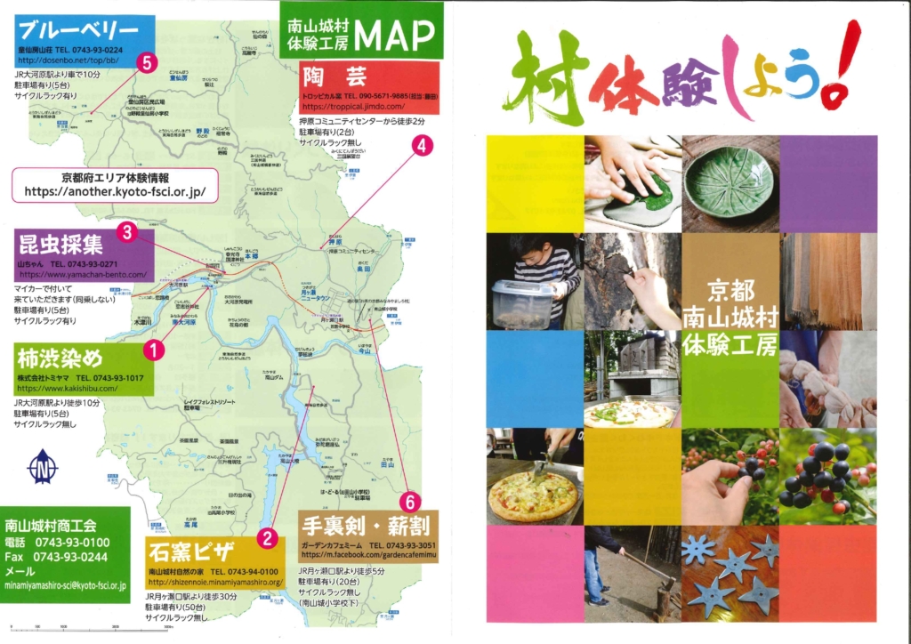 南山城村体験MAP 2021 7/21 観光MAP観光情報 2021.07.21 2021.07.21 観光MAP観光情報 京・村まつり2021の開催中止について サイクリングMAP 関連記事 月ヶ瀬梅林 2022.03.14 11月3日は田山花踊り! 2025.10.15 ★★第11回【南山城村フォトコンテスト】のご案内★★ 2022.08.01 ワクワクお手軽家族キャンプ体験in南山城村2022秋 2022.10.13 「むら活き生きまつり2021」の開催中止について 2021.09.03 京都きづ川 アクティビティキャンペーン2025~相楽東部でいっぱい遊ぼう!~ 2025.08.27 「京村まつり2022」について 2022.06.06 南山城村・体験plaza 「茶文化体験」のご案内 2024.04.10